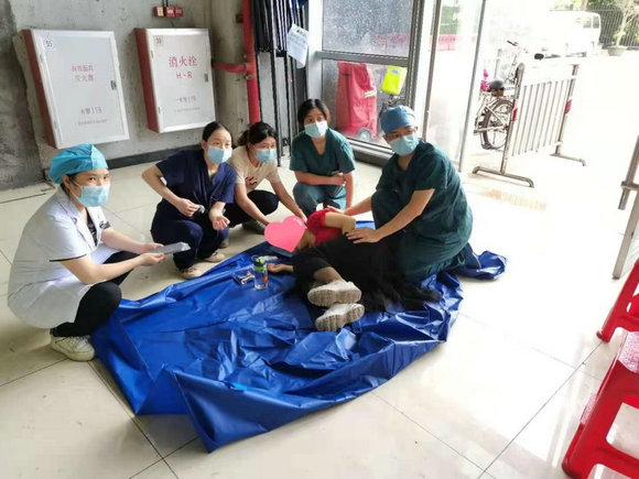 由于现场没有车床,郭明炎立刻找来一张遮阳棚的棚布铺在地上,让吴女士躺在上面。经过降温和补水之后,吴女士很快清醒过来,但精神状态仍然不是太好。随后,郭明炎与口腔科招洛丹主治医师把吴女士送到最近的医院进一步治疗。