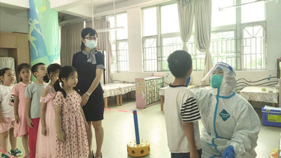 “张开嘴巴,发出‘啊’的声音,一会就好了,别紧张哦。”在龙岗区的一家幼儿园,有着12年党龄的老党员、附属第七医院心血管中心护士长宁丽冰耐心地给小朋友们测核酸。这些天,她的行程急如星火,曾1天带着17名医护人员组成的团队跑了7家幼儿园。