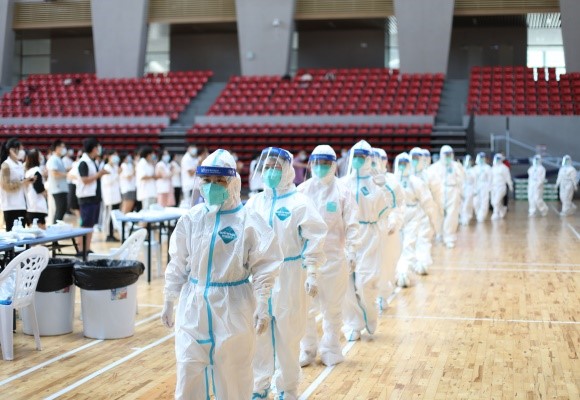 在30日接到支援核酸采样志愿报名的通知后,申涛第一时间响应,应越秀区紧急要求和队友们一起连夜冒雨赶往越秀区珠光街道等采样点支援,奋战到晚上十一二点。