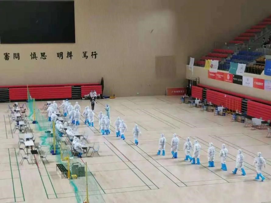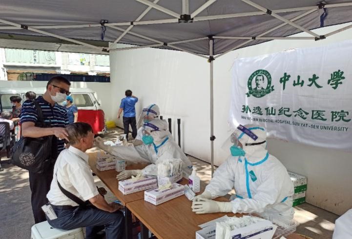5月30日,广州开展核酸检测筛查的范围扩大。中山眼科中心半个小时内300多位医护人员主动请战。肿瘤防治中心两批分别派出121人和51人赶赴越秀、天河支援社区核酸采样工作。附属口腔医院1小时内全院一半以上医护人员主动报名。附属第六医院半天内组建500余人的预备队。