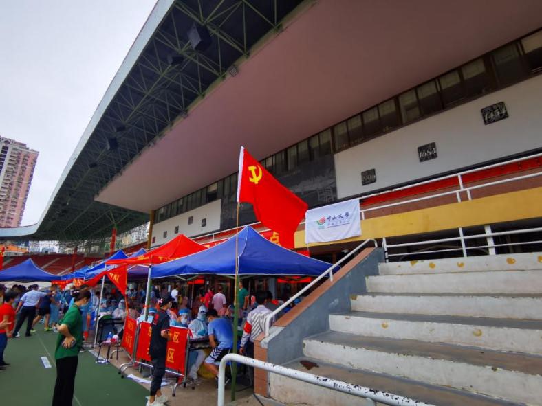 社区核酸采样点第一线党旗飘扬(来源:肿瘤防治中心)