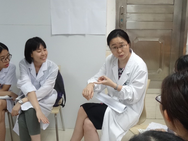 戴冽教授(居中)进行基于真实病例实战训练的TBL教学 (来源:孙逸仙纪念医院)