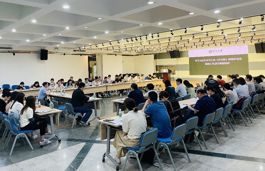与会人员集体学习了习近平总书记给《文史哲》编辑部全体编辑人员重要回信精神。5月9日,习近平总书记给《文史哲》编辑部全体编辑人员回信,对办好哲学社会科学期刊提出殷切期望。