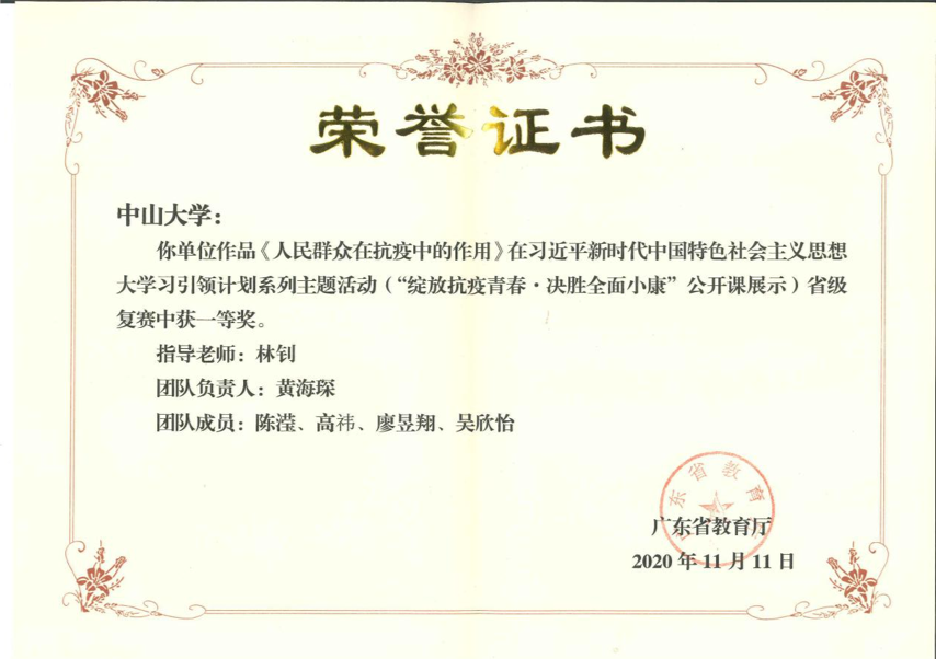 学生作品在广东省高校大学生讲思政公开课展示活动中荣获一等奖(来源:哲学系(珠海))