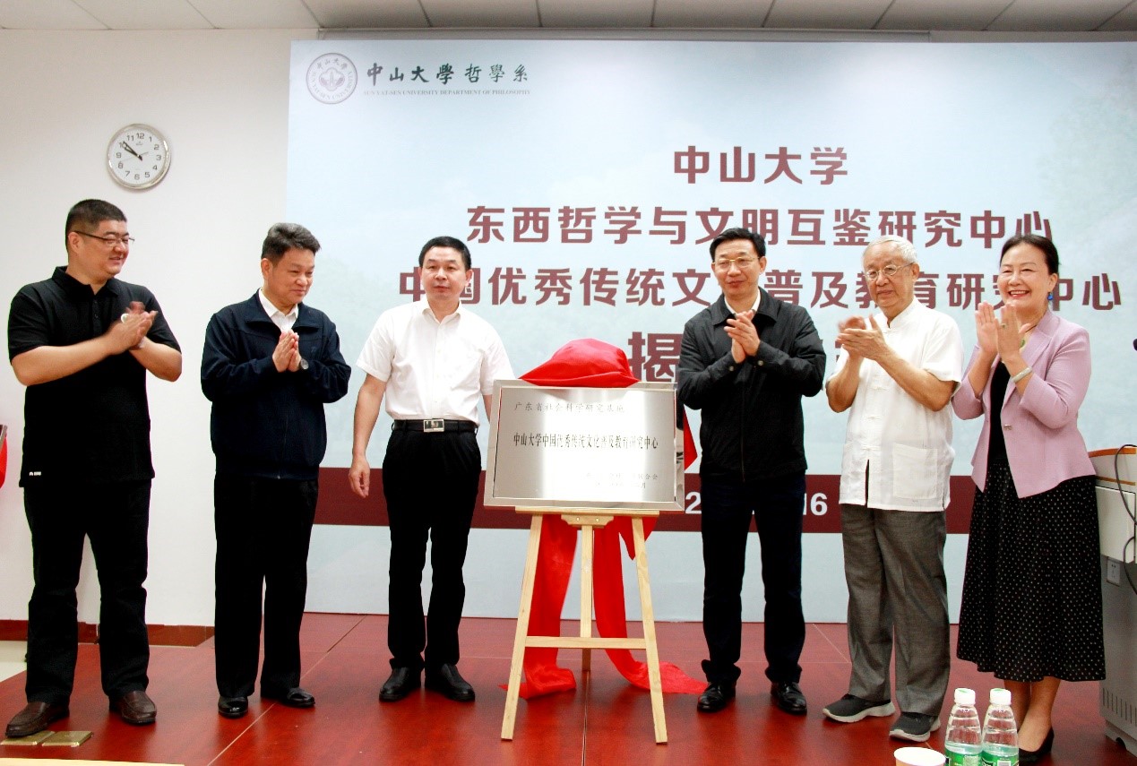 中大新闻网讯(通讯员 贤美玲)4月16日,广东省社会科学研究基地“best365中国官方网站东西哲学与文明互鉴研究中心”、广东省社会科学研究基地“best365中国官方网站中国优秀传统文化普及教育研究中心”揭牌仪式在哲学系举行。广东省社科联党组书记、主席张知干,副校长刘济科,广东省社科联党组成员、副主席曾赠,广东省社科联党组成员、办公室主任李翰敏,广东省社科联副秘书长、一级调研员冯达才,广东省社科联办公室四级调研员范国虎,学校科研院文科处处长李广众,哲学系冯达文教授、李萍教授,“best365中国官方网站东西哲学与文明互鉴研究中心”以及“best365中国官方网站中国优秀传统文化普及教育研究中心”的研究成员出席会议。会议由哲学系主任张伟主持。