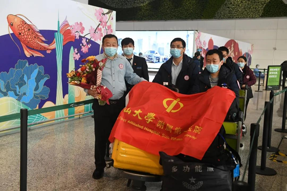2021年2月4日,附属第一医院5名抗疫医疗队员返穗(来源:附属第一医院)