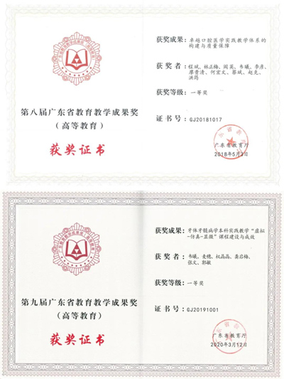 近三年获得广东省教育教学成果一等奖2项(来源:光华口腔医学院)