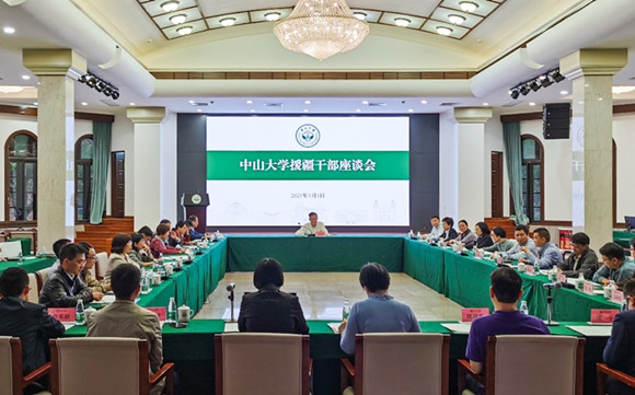 中大新闻网广州3月2日电(通讯员林鸿章) 3月1日下午,我校在广州校区南校园怀士堂召开援疆干部座谈会。校党委书记陈春声,广东省2021年“组团式”援疆干部及附属喀什医院增派干部,新疆大学旅游学院援疆干部,援疆干部所在单位负责人,以及党委组织部、校长办公室、人力资源管理处、医院管理处等职能部门负责人出席会议。会议由校长办公室杨建林主任主持。