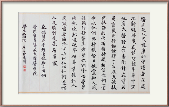 《敬录习近平总书记给在首钢医院实习的西藏大学医学院学生的回信》——陈孟璋同学作品(来源:艺术学院)