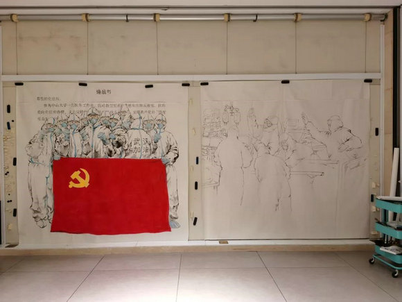 姚友毅副教授画作“战役”——七米巨作致敬白衣战士(来源:艺术学院)