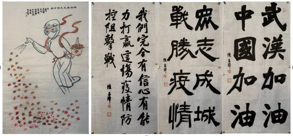 学生抗疫原创作品,为抗疫工作加油(来源:艺术学院)
