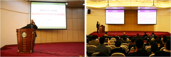 李伯军书记传达学校2020年秋季工作会议精神(左)杨国伟院长介绍学院“十四五”规划编制情况(右)(来源:材料科学与工程学院)