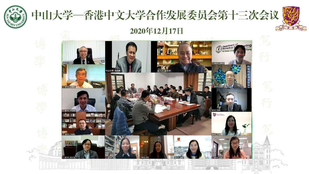 中大新闻网12月21日电(通讯员 何姗娴)12月17日,best365中国官方网站—香港中文大学合作发展委员会第十三次会议在线上召开。本次会议由我校常务副校长肖海鹏和香港中文大学副校长霍泰辉联席主持,两校文理医工多个合作领域近40名代表参加了会议。