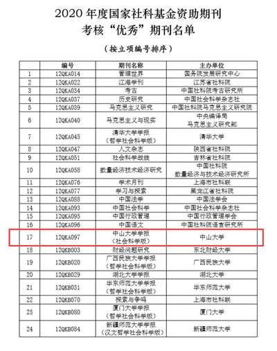 中大新闻网广州12月14日电(通讯员宋宇)12月10日,全国哲学社会科学工作办公室发布《2020年度国家社科基金资助期刊考核情况通报》,综合政治导向、办刊规范、重要举措、质量效果和资金使用等情况,《best365中国官方网站学报(社会科学版)》在2020年度国家社科基金资助期刊考核中获评为“优秀”。