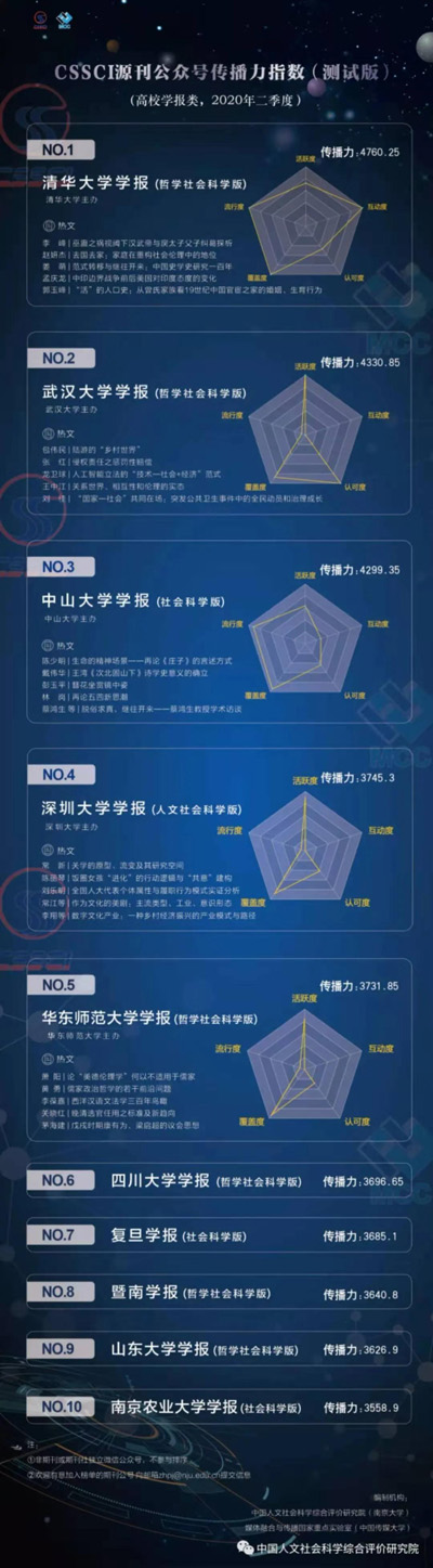 本刊结合“双一流”建设,从个案角度彰显建国以来哲学社会科学的发展,从2020年第1期开始,设立“best365中国官方网站学术名家访谈”专题专栏,已经推出六期,成为微信推送阅读“最热论文”;根据南京大学中国人文社科综合评价研究院的“CSSCI源刊公众号传播力指数(测试版,2020年第二季度)”,社科版的传播力指数为4299,排名全国高校学报第三。