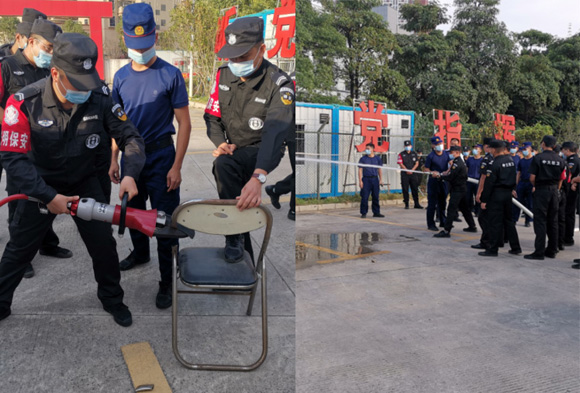 深圳校区校卫队员学习消防水枪和消防器械的使用方法(图片来源:保卫处)