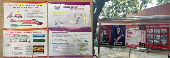派发消防安全宣传单和张贴消防安全宣传海报(图片来源:保卫处)