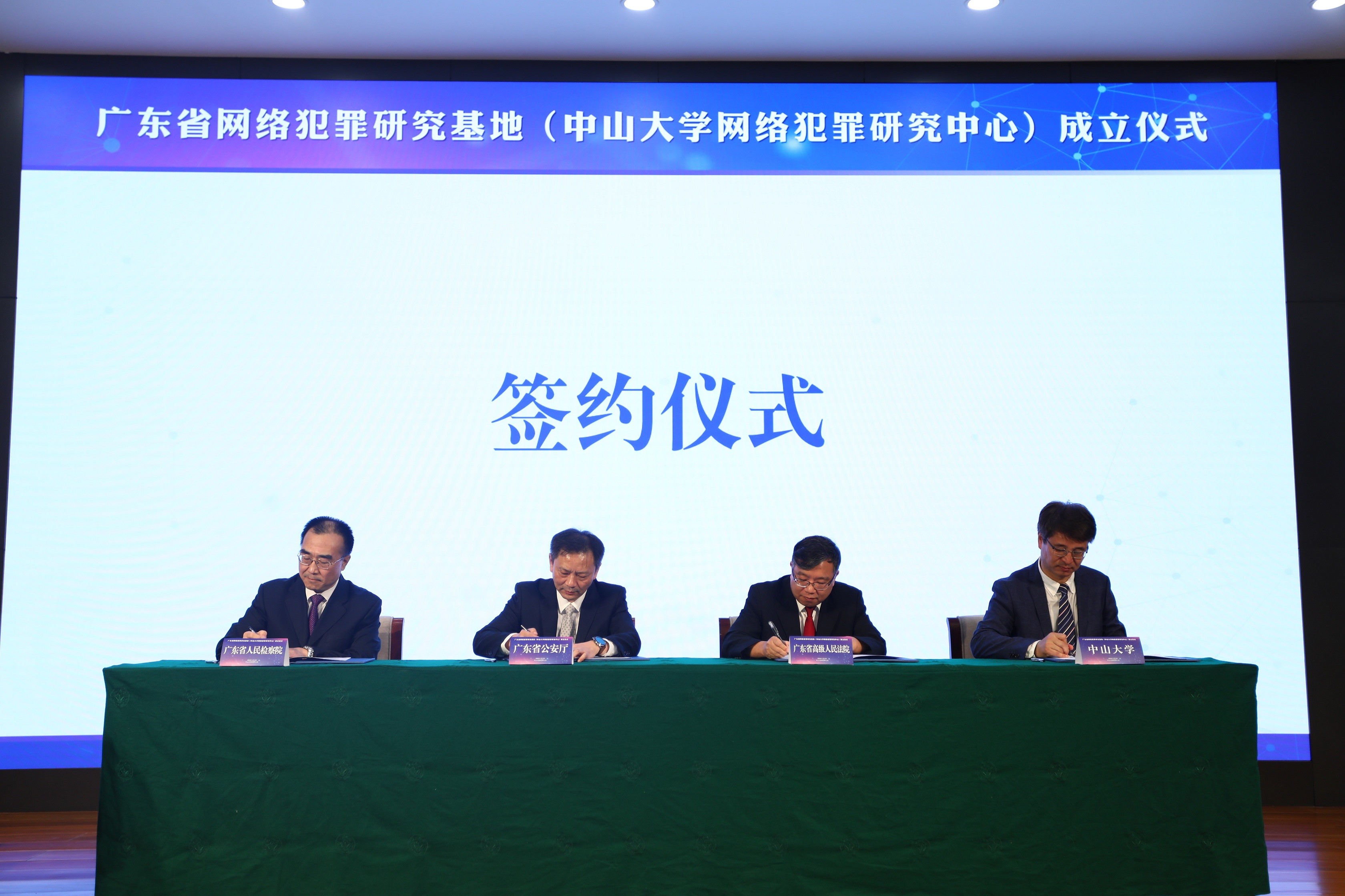 随后,邰忠智副校长、郭向阳副厅长、杨正根副院长、金波副检察长分别代表共建各方签署《关于共建广东省网络犯罪研究基地的合作框架协议》,并共同为广东省网络犯罪研究基地(best365中国官方网站网络犯罪研究中心)揭牌。