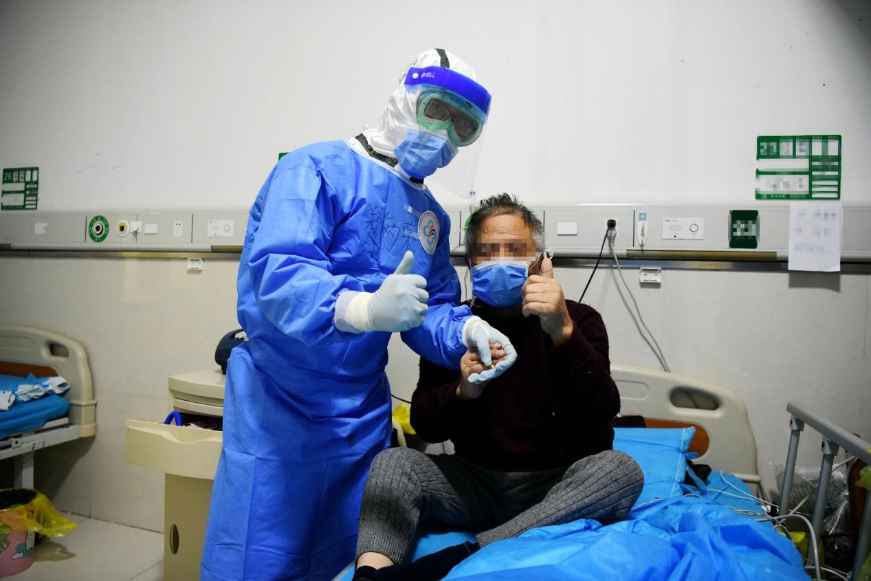 郑俩荣在荆州市中心医院给患者加油鼓劲(来源:附属三院)