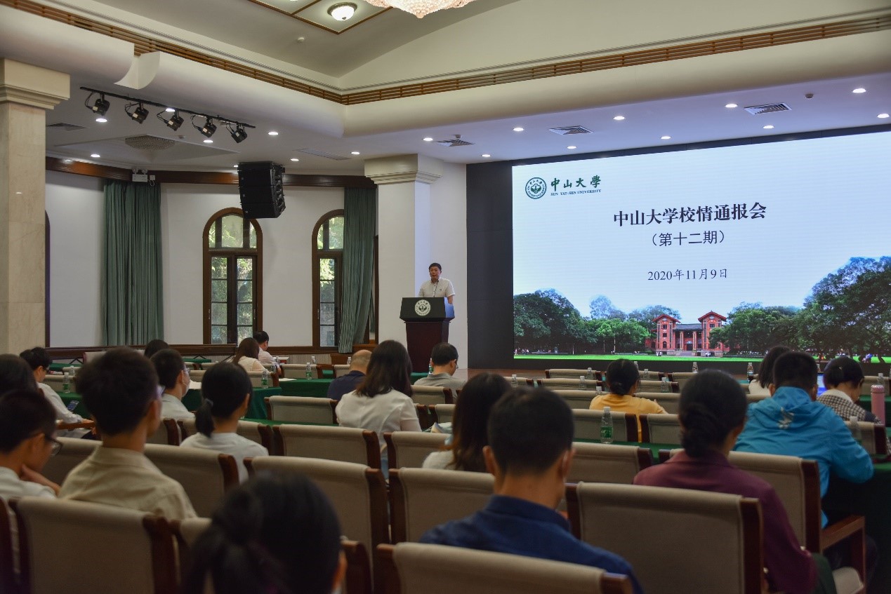 中大新闻网广州11月13日电(通讯员 陈琼芝)11月9日下午,我校第十二期校情通报会在广州校区南校园怀士堂举行,同时面向珠海校区和深圳校区直播,共有一百余名师生参会。