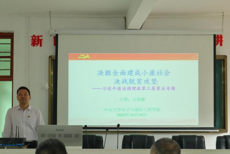 中大新闻网电(通讯员 黎彪)10月30日,电子与通信工程学院党总支组织师生党员、学生入党积极分子一行35人,前往连州市丰阳镇柯木湾村开展“丹心系家国,携手奔小康”主题党日活动,进行脱贫攻坚调研与慰问。