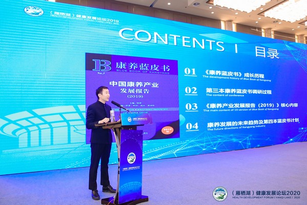 何莽副教授代表编委会介绍此次发布会的主要内容:以康养“资本与市场”为主题的第三本《康养蓝皮书》,主要对区域康养产业发展趋势和典型案例进行深入分析,内容涉及康养旅游目的地、康养农业、森林康养、康养小镇、医养康养结合、康养设施设备等领域前沿话题。该书收录了《2019年中国区域康养产业可持续发展能力评价报告》《2019年中国康养市场分析报告》两个总报告,《旅游养老目的地发展研究》《森林康养产业发展:全球视野与浙江实践》等分报告,《康养产业发展及资本投资机会》《2019年森林康养产业发展实践探索》等专题报告,以及《新疆温泉县康养产业发展报告》等案例报告。