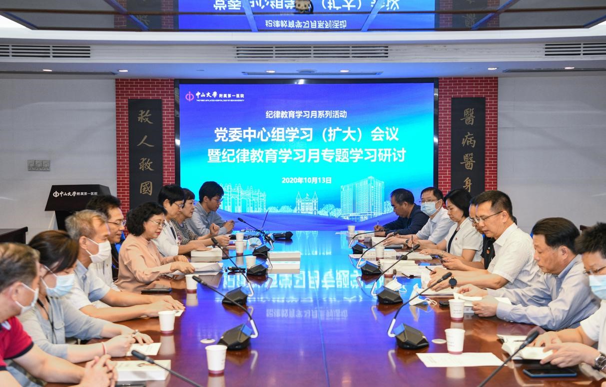中大新闻网广州10月21日电(通讯员 陈安琪)10月13日下午,附属第一医院党委在1号楼17楼中会议室召开中心组学习(扩大)会议,集中学习研讨《习近平谈治国理政》第三卷。会议由党委书记骆腾主持,院领导班子成员、党委委员、纪委委员、院长助理、党办主任、院办主任、纪委办主任、各党总支书记、专职党支部书记等参加会议。