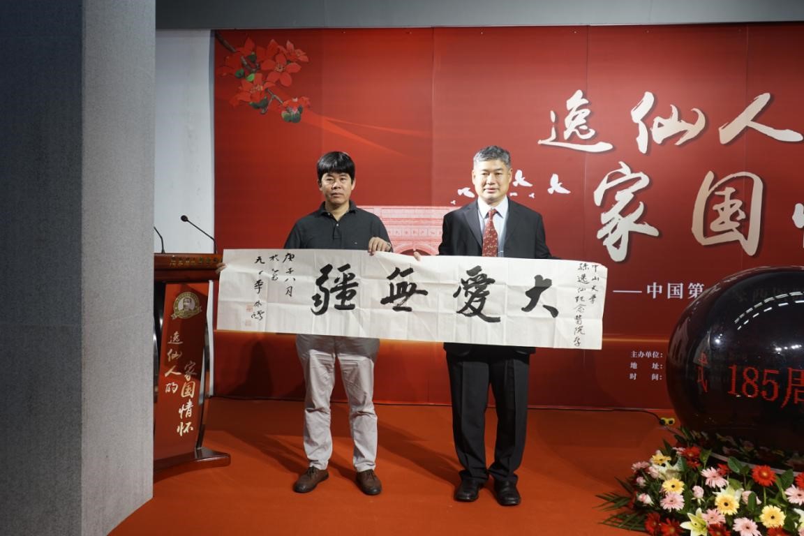 随后,出席开展仪式的领导一起为图片展揭幕。李菲鸿馆长为孙逸仙纪念医院赠送了书法作品。他表示,在了解医院的历史和事迹后,对逸仙人的家国情怀非常感佩,以此作品表达情谊并为孙逸仙纪念医院185周年院庆助兴,宋尔卫院长接受赠送并回赠孙逸仙纪念医院画册纪念品。