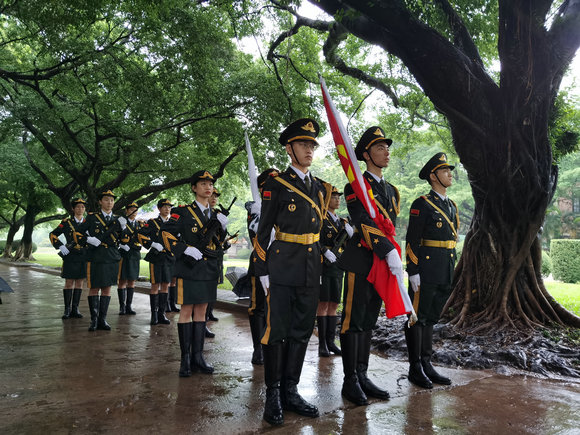 早晨8时许,国旗班的成员们早早就精神抖擞地在仪式现场就位等待。他们的目光如炬,流露出心中的赤子之心。他们的身姿挺拔如松,展现出中大莘莘学子对守卫国旗的坚定信念与决心。