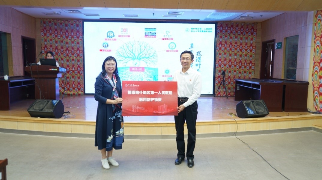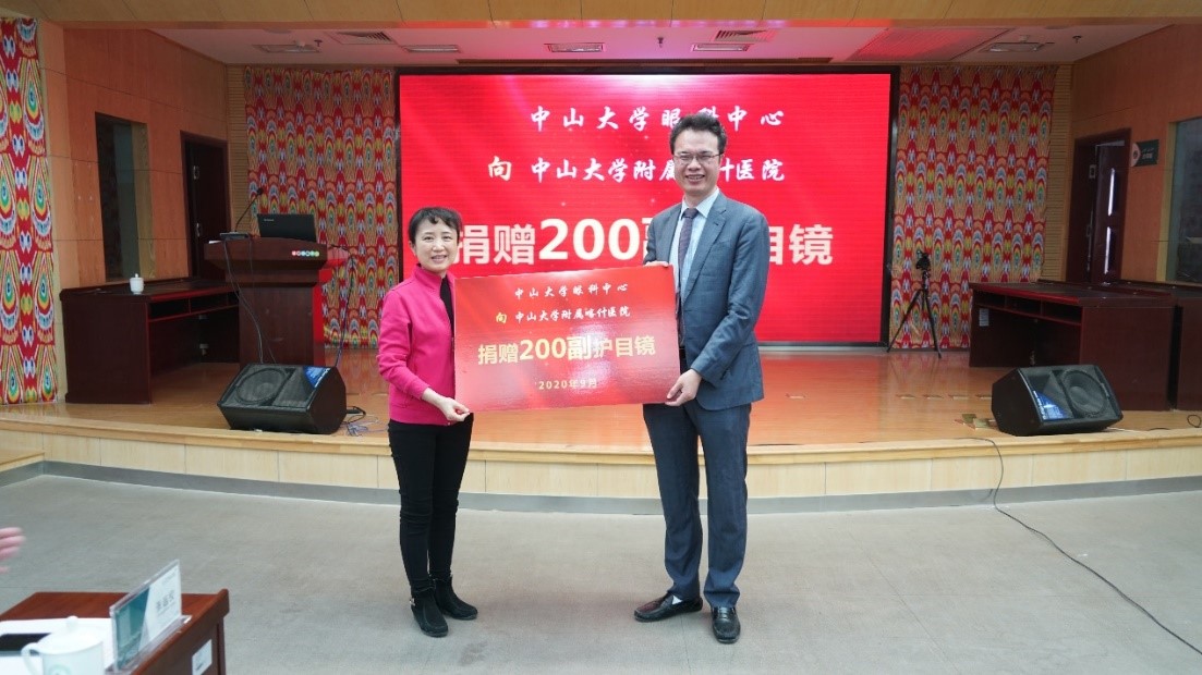▲我校中山眼科中心向附属喀什医院捐赠护目镜(来源:附属喀什医院 田涛)