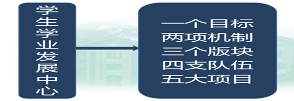 学院学生学业发展中心由青年教师专职辅导员担任中心主任,由党政专职辅导员任中心副主任,采取“一二三四五”的实现路径,统筹推进学生学业发展工作。