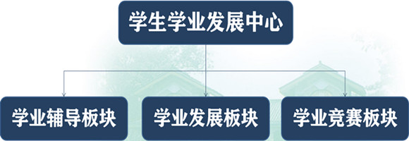 中心下设三个板块:学业辅导板块、学业发展板块、学业竞赛板块。学业辅导板块,以党员助学小组为依托,优秀学生党员与学业困难学生开展“一对一”学业帮扶,端正学习态度,激发学习动力,提高学业自信。学业发展板块,以学院学生会学术部、研究生会学术部为依托,主要举办班级读书沙龙、学术工作坊、深造系列经验分享会等,强化学术训练,提高学术能力,提升本科生深造率。学术竞赛板块,以学院团委实践部为依托,主要举办与专业相关的学术竞赛,锻炼学生的科研能力和专业实践能力。