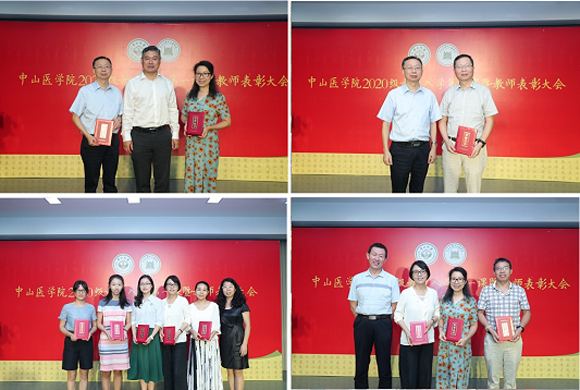 宋尔卫院长、高国全副院长、王淑珍副院长、信文君副书记为获奖教职工颁授获奖证书(图片来源:中山医学院)