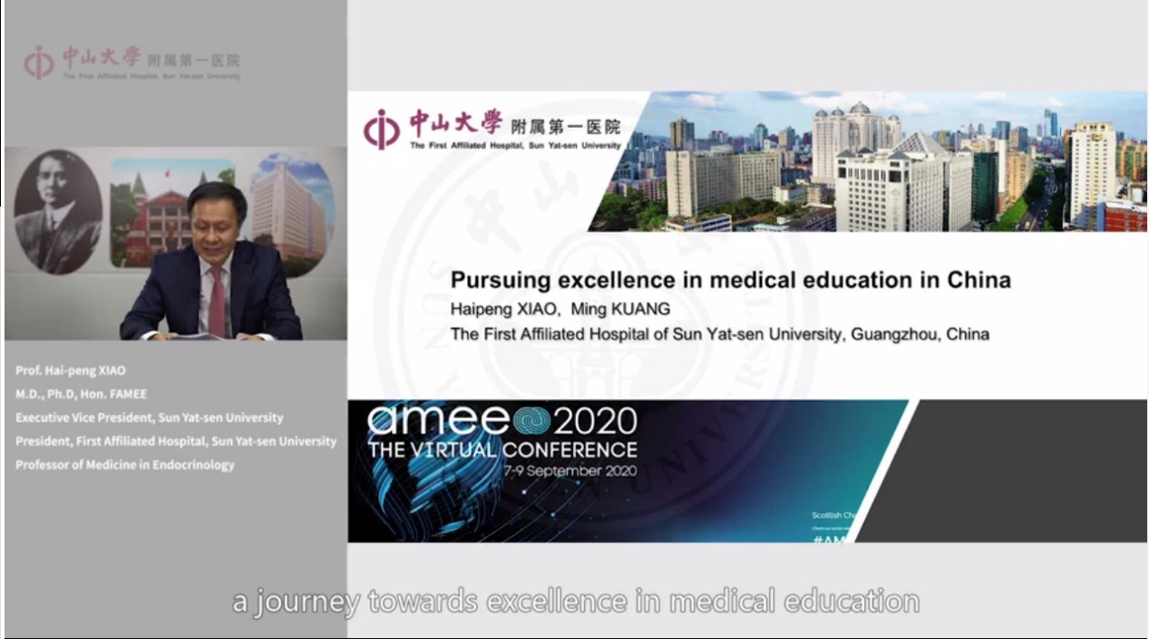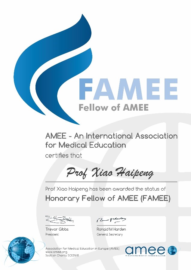 中大新闻网广州9月18日电(通讯员彭福祥、潘曼琪)9月7日至9日,欧洲医学教育联盟(The Association for Medical Education in Europe, AMEE)召开2020线上年会,大会对医学教育领域有突出贡献的专家进行表彰,best365中国官方网站常务副校长、附属第一医院院长肖海鹏教授在推进临床师资培训方面作出重要贡献,成为今年全球荣获AMEE Honorary Fellowship的两位专家之一,也是首位荣获该奖项的中国专家。
