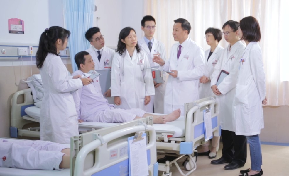 肖海鹏教授查看病房,指导学生(图片来源:附属第一医院)
