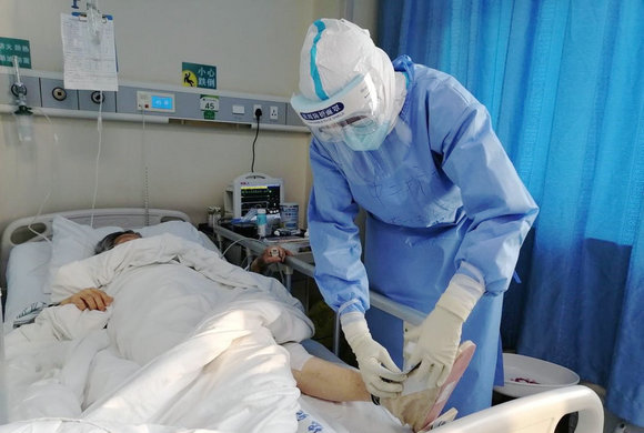 蔡传锷在华中科技大学附属协和医院西院区隔离病房护理患者