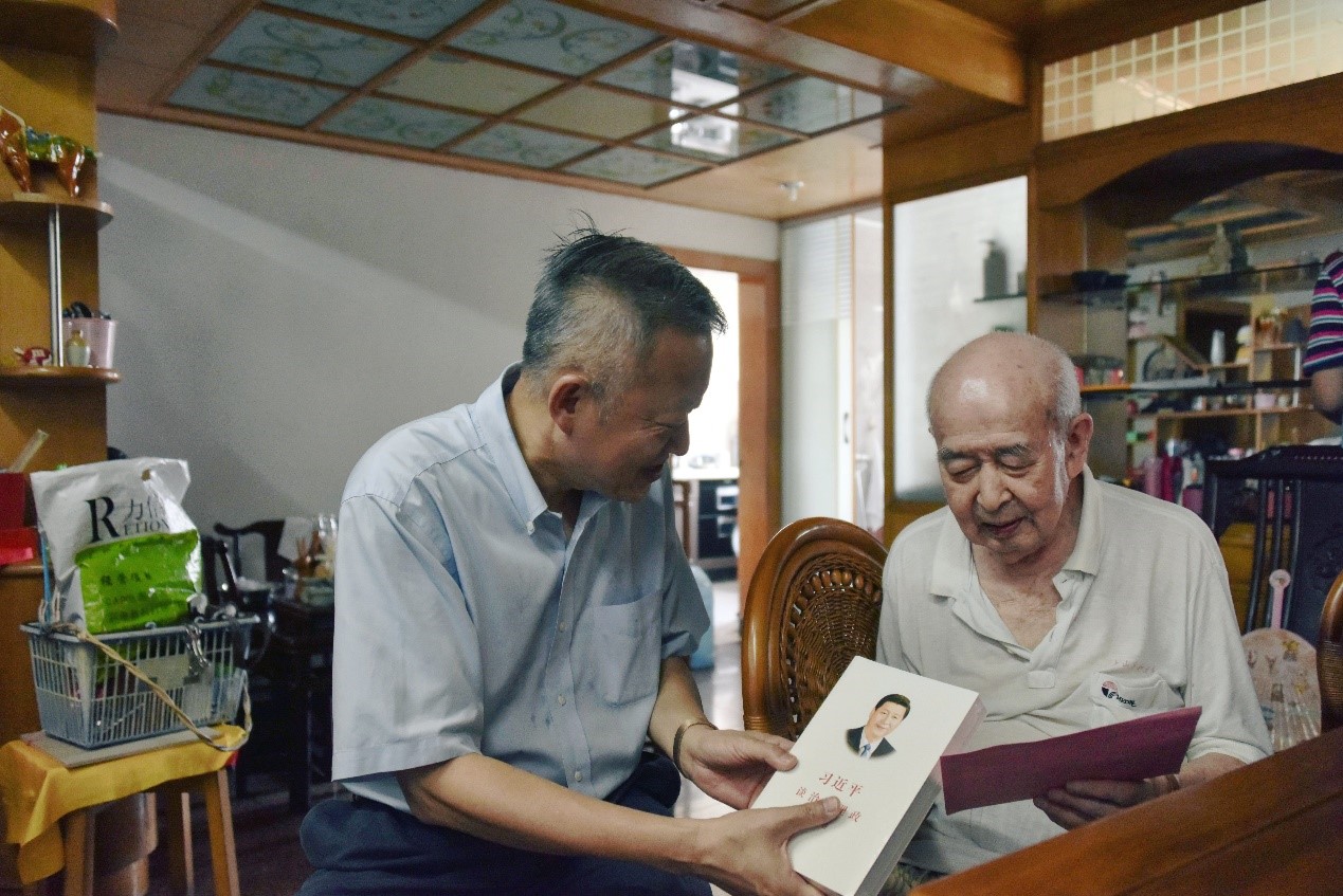 陈春声书记一行先后看望了抗战老战士李哲、滕毅和陈化成。3位老党员均年逾九秩,陈春声书记逐一询问了他们的身体状况,叮嘱他们要保重身体,还为每位老战士送上了一本《习近平谈治国理政》第三卷,将学校组织学习习近平新时代中国特色社会主义思想的热烈氛围带到各位老党员身边。