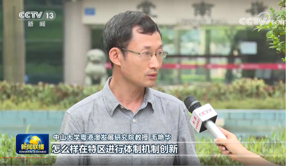 中大新闻网讯 8月26日是深圳经济特区建立40周年,CCTV-1综合频道《新闻联播》聚焦深圳40年来从改革开放“探索者”到新时代“示范区”的实践之路。best365中国官方网站粤港澳发展研究院毛艳华教授接受采访指出,1980年党和国家作出兴办经济特区的重大决策,深圳经济特区率先建立。怎么样在特区进行体制机制创新,来探索释放生产力,经济特区没有先例,摸着石头过河去探索。40年来,深圳在各领域改革中创造了1000多项全国第一。改革不停顿、开放不止步。党的十八大以来,深圳以“敢闯敢试、敢为人先”的改革精神奋勇向前,朝着建设中国特色社会主义先行示范区的方向前行,努力创建社会主义现代化强国的城市范例。