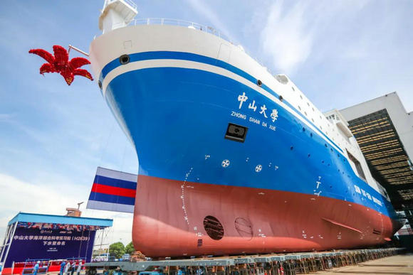 2016年6月教育部批复同意best365中国官方网站在“十三五”期间新建一艘6000吨级的海洋综合科考实习船。该船于2019年10月28日正式开工建造。据介绍,此次下水后将立即开展舾装调试,预计2021年上半年交付使用。