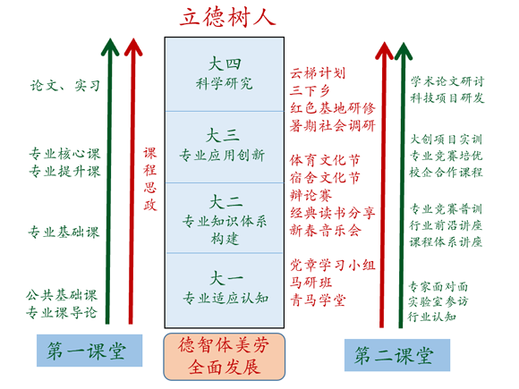 学院认真贯彻落实“立德树人”根本任务,坚持“德才兼备、领袖气质、家国情怀”的人才培养目标,通过“两个课堂”有机融合,发挥全员育人效应,营造“学在中大、追求卓越”优良学风,打造新工科人才培养模式,推动升学深造提升,促进学生全面健康发展。