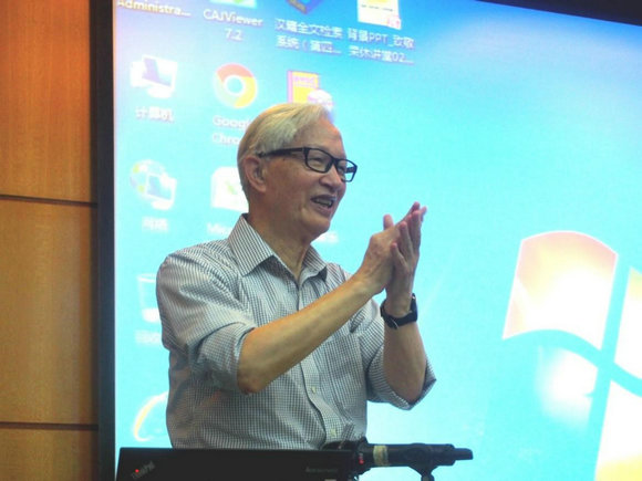 黄修己教授在“致敬荣休讲堂”开讲(图片来源:中文系)