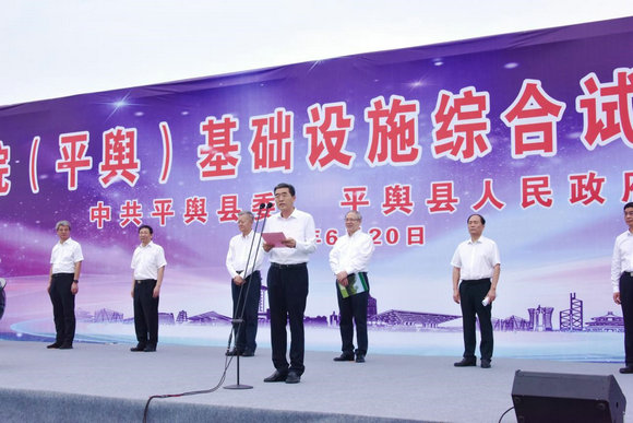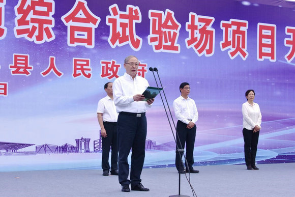 新闻网讯(记者 郝俊)6月20日上午,best365中国官方网站河南研究院坝道工程医院(平舆)基础设施综合试验场项目开工仪式在河南省驻马店市平舆县举行。驻马店市委常委、常务副市长金冬江,副市长冯玉梅,县委书记张怀德,县委副书记、县长赵峰,市教育局局长王和平,二级巡视员禹卫东,县人大常委会主任石玉兴,县政协主席李志娴;我校党委书记陈春声,中国科学院院士、我校校长罗俊,中国科学院院士、我校地球科学与工程学院教授张培震,中国工程院院士、我校土木工程学院院长王复明,我校副校长邰忠智,以及相关职能部门、院系负责人出席仪式。仪式由平舆县县长赵峰主持。