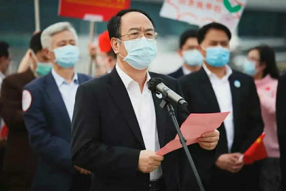 刘冠贤在讲话中强调,医疗队队员坚决响应习近平总书记和党中央号召,主动请缨,白衣执甲,英勇逆行,全身心投入到武汉协和医院抗击疫情第一线,不愧是勇敢的白衣战士,不愧是广东的优秀儿女,不愧是党和人民的英雄!