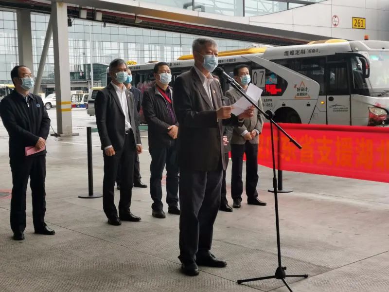 医疗队队长、医院肝脏外科主任杨扬在欢迎仪式上发言。他表示,庚子年正月十六,医院各科室骨干133名医护人员自愿报名奔赴武汉,驰援湖北抗击新冠肺炎。作为武汉同济医院光谷院区唯一的一支广东医疗队,在援汉的50天里,附属第三医院医疗队累计收治患者90人,其中85.6%以上为重症和危重症患者,是光谷院区收治患者最多的重症病区之一。医疗队采用多学科立体管理、个性化综合方案的救治模式,实现了高治愈率、低病亡率的目标。全体医疗队成员拼尽全力将死亡率降低到2.2%,在新冠肺炎患者尤其是老年患者的救治工作中取得了显著的成绩。他强调,本次抗疫一线,37名党员积极发挥模范带头作用,在医疗队中勇挑重担,始终冲在最前面,30位年轻的同志更是在抗疫一线光荣地加入了党组织。