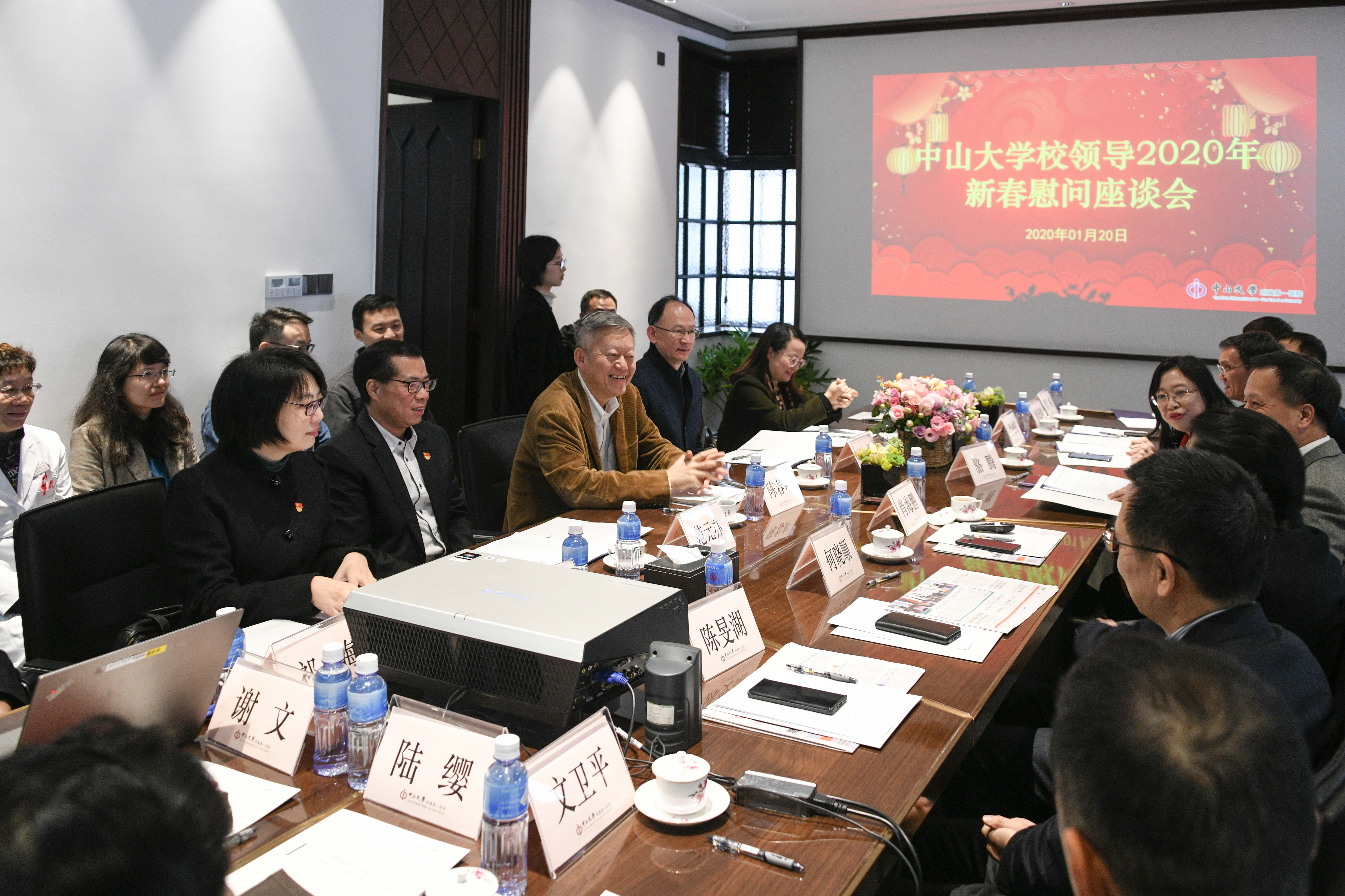 慰问期间,附属第一医院院长肖海鹏、孙逸仙纪念医院党委书记王景峰、附属第三医院院长戎利民分别汇报了医院2019年的发展情况以及今后的发展规划,陈春声书记及相关能部门负责人就人才队伍建设、学科建设、科学研究、研究生招生培养、专科布局、新院区建设、社会服务等问题与大家进行了交流。