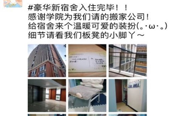 搬入宿舍后同学们发的朋友圈截图