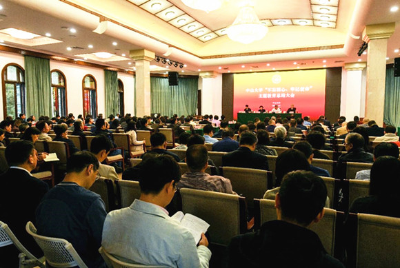 1月14日上午,我校在怀士堂举行“不忘初心、牢记使命”主题教育总结大会,认真学习贯彻习近平总书记在中央主题教育总结大会上的重要讲话精神,总结学校开展主题教育的主要做法和取得的成效,并对进一步巩固和提升主题教育成效、推动各项工作落地落实作出安排。