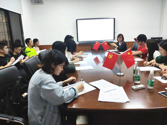 韩雪敏为入党积极分子讲解入党流程(右一)