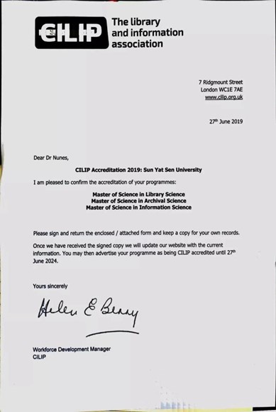 英国CILIP颁发的学术硕士项目认证书