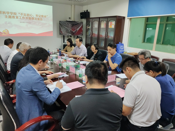 学院党委书记陈省平在随后举行的座谈会上,汇报了学院开展主题教育的相关情况。他谈到,作为教育部“三全育人”综合改革试点单位,自主题教育开展以来,学院以新思政观引领改革,深入挖掘各项工作中蕴含的育人元素,不断完善“十大育人体系”,努力把立德树人根本任务落细、落地、落实,为党育人、为国育才。目前,学院已凝练形成了“海洋科学专业立德树人一体化模式”和“三全育人综合改革试点方案”,在全校乃至全国都起到了良好的示范辐射效果。